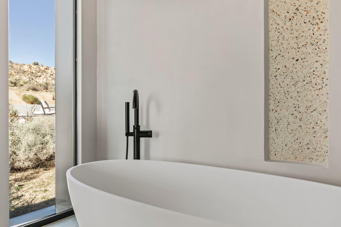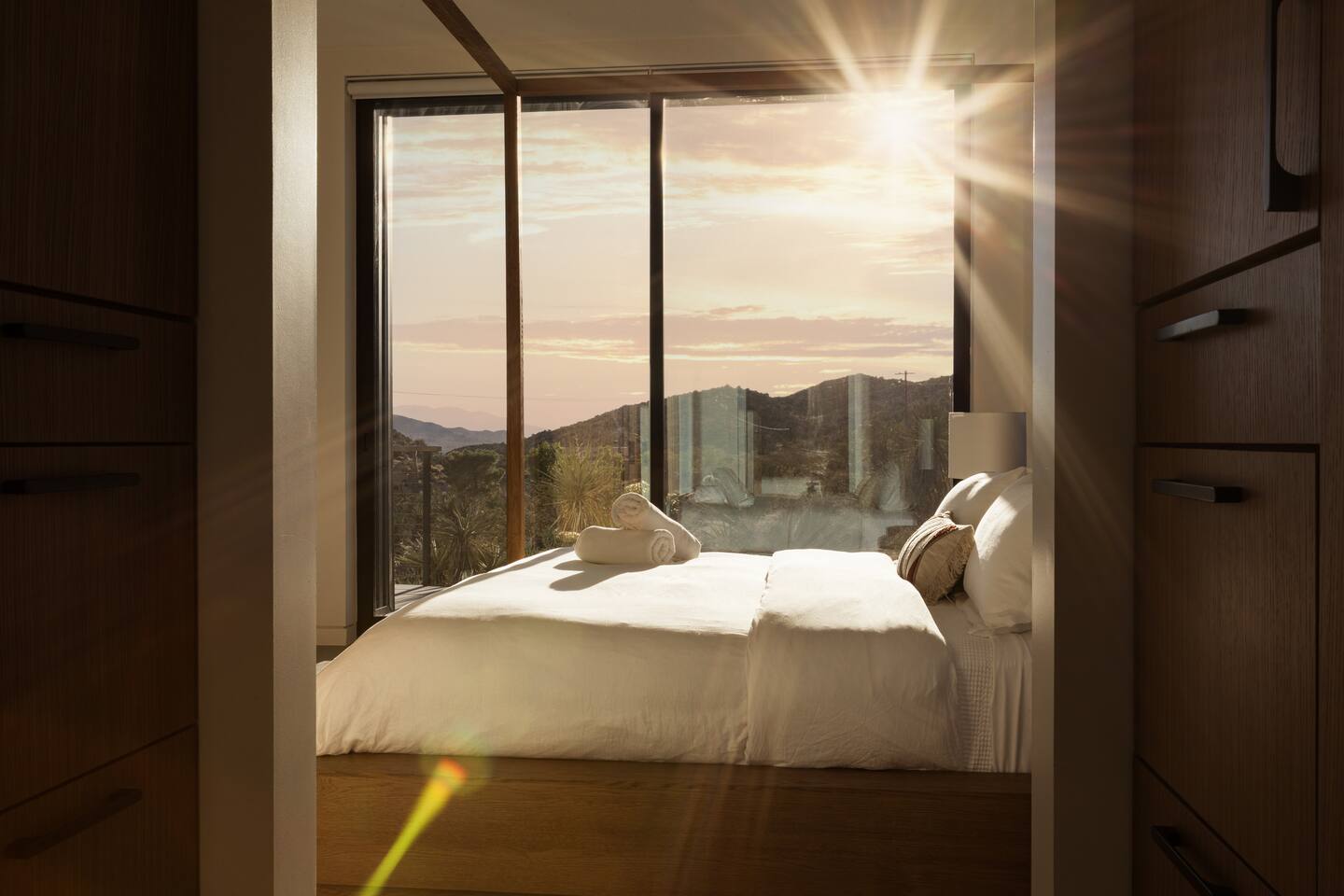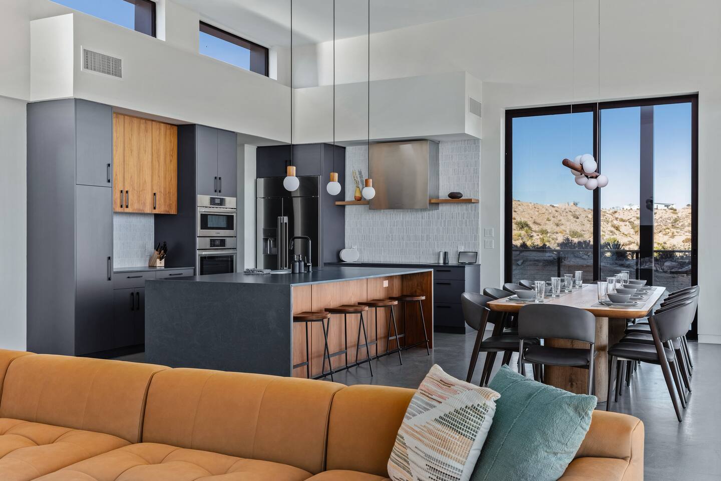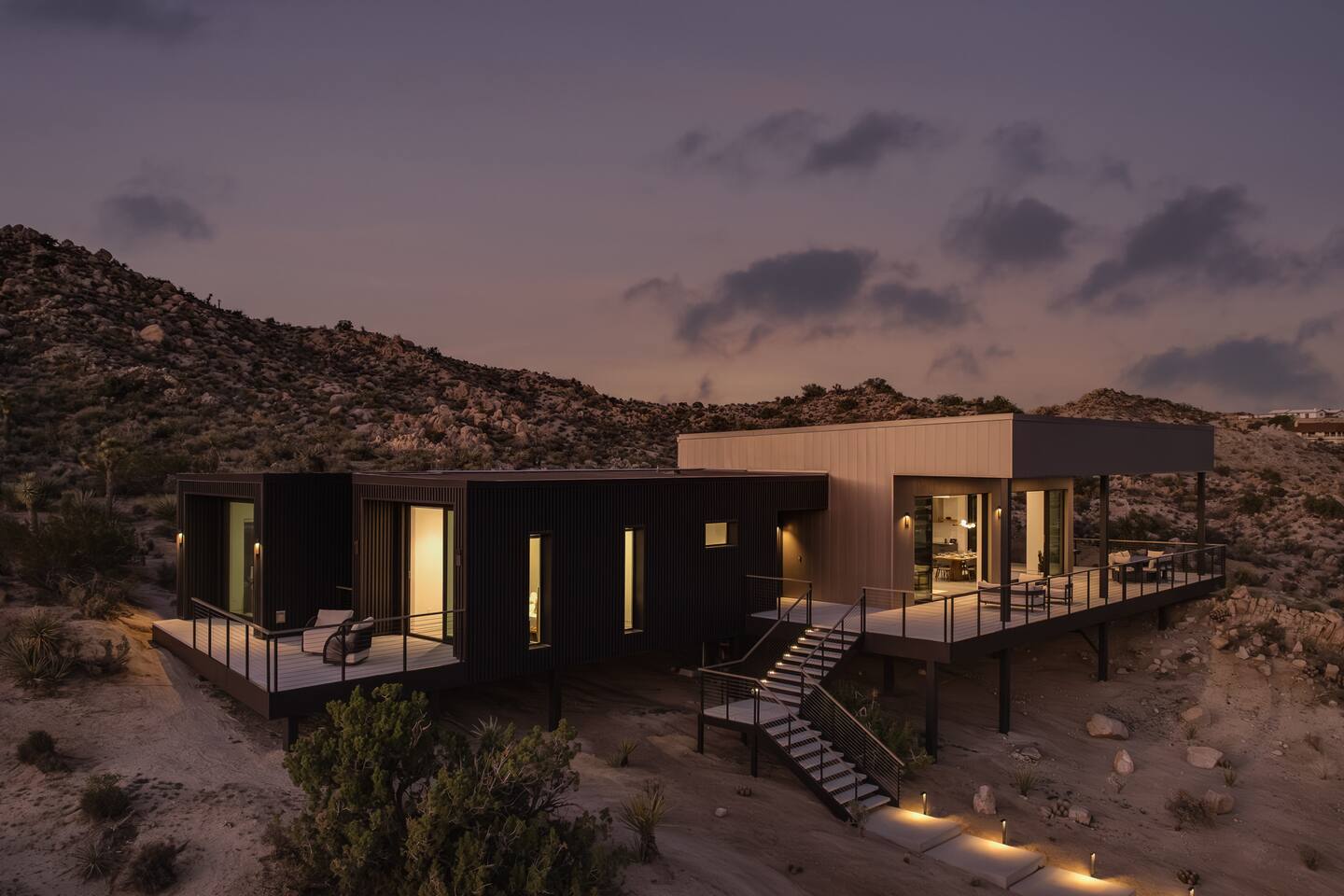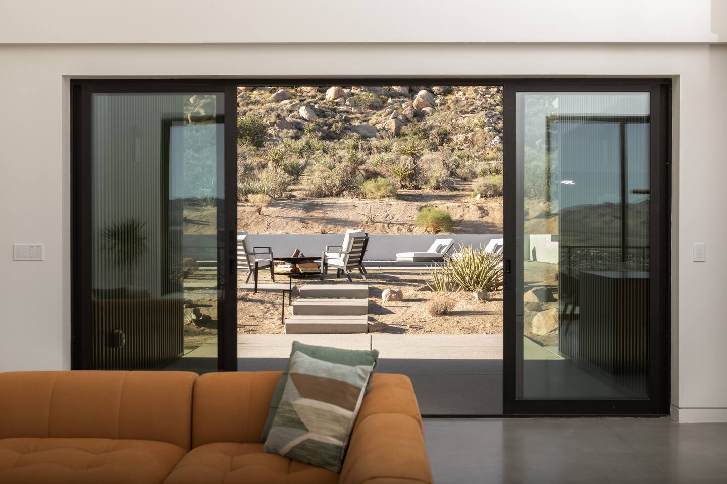 The Reserve at Boulder Ridge: A Luxury Retreat on 5 Private Acres Discover the pinnacle of desert luxury at "The Reserve at Boulder Ridge," an exclusive, architectural masterpiece perched atop a high point that overlooks the entire Morongo Basin with commanding views. From the moment you arrive on five private acres, you are greeted by panoramic views. Inside, four serene bedrooms offer ultimate comfort, including two distinct primary suites, all equipped with automated blackout shades for a perfect night's rest. This dual-suite arrangement is a true differentiator for ultimate privacy and luxury. The open-plan living area, defined by soaring 16-foot ceilings and expansive glass sliding doors, effortlessly blends the indoors and outdoors. You'll prepare gourmet meals in the fully equipped kitchen, complete with espresso machine (beans provided), and Vitamix blender. The vast glass doors open to reveal your private resort oasis in the backyard. Here, the heated saltwater pool and luxurious hot tub are dramatically framed by a giant rock pile—the perfect spot to relax on a daybed or gather around the wood burning fire pit as you watch the sunset and the roadrunners flit by. Stay connected with fast Starlink WiFi and enjoy music with the Sonos whole house sound system, all just a short, scenic drive from highlights like Joshua Tree National Park (20 min) and Pappy and Harriet's (14 min). ☀️ Key Features • Location: Perched on 5 private acres overlooking the Morongo Basin. • Architecture: New build with 16-foot ceilings and high-end finishes. • Bedrooms/Baths: 4 Bedrooms / 3 Bathrooms (with 2 King Primary Suites). • Outdoor Resort: Heated Saltwater Pool, Hot Tub, Wood Burning Fire Pit, and luxury outdoor seating/daybeds. • Dining: Chef's kitchen + BBQ on the front deck for grilling. • Comfort: Automated blackout shades in all bedrooms. • Technology: Fast Starlink WiFi (perfect for remote work) and Sonos whole house sound system. • Proximity: Less than 20 minutes to local hot spots, including Joshua Tree NP, La Copine, Pappy and Harriet's, and Integration Sound Bath.