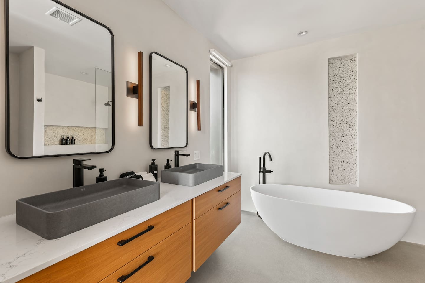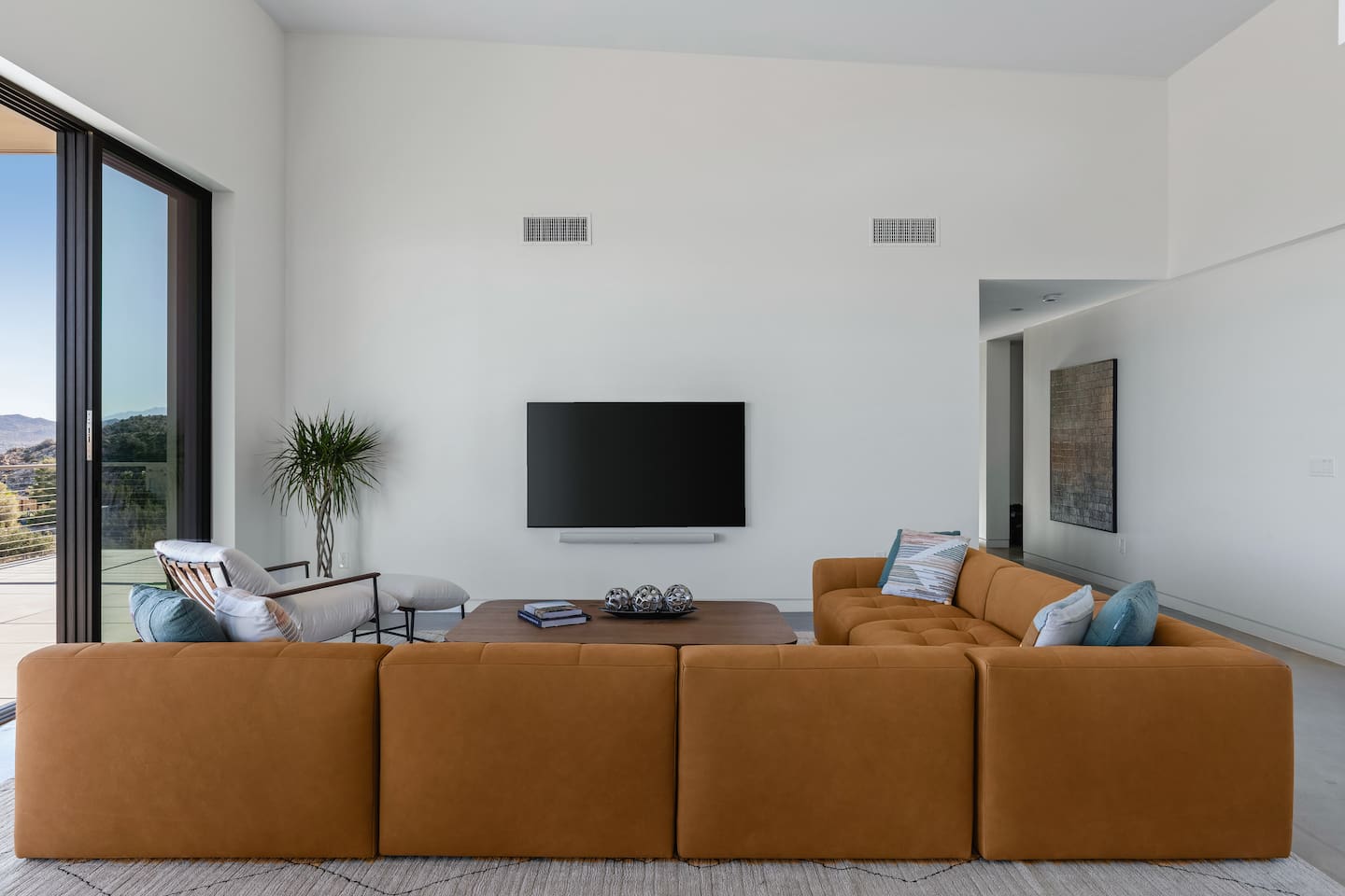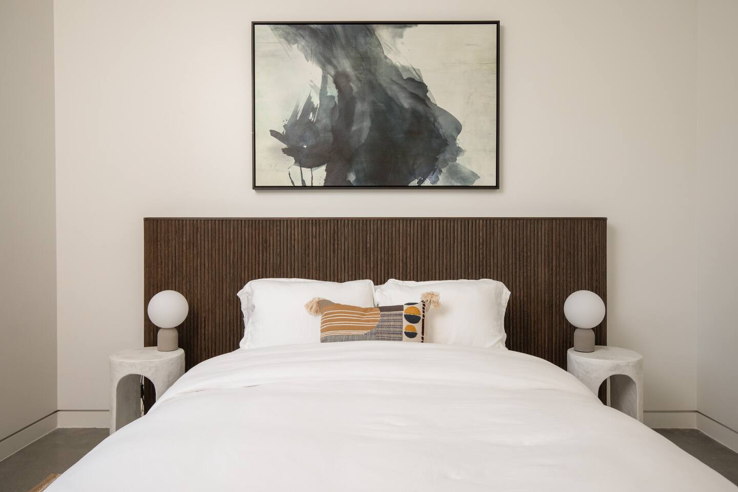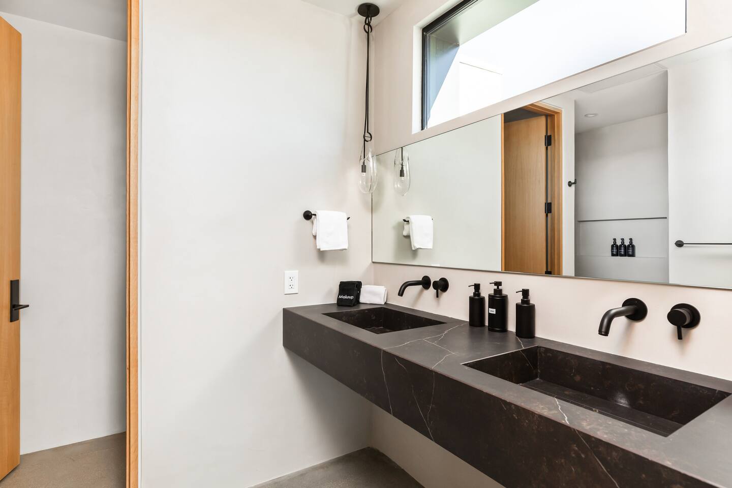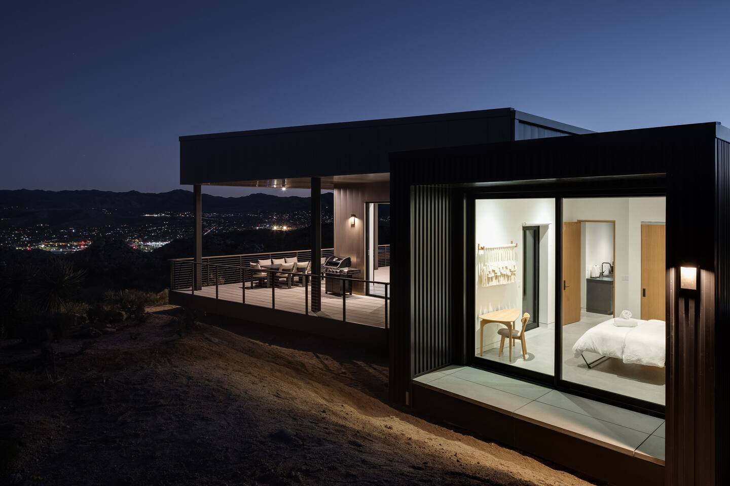 The Reserve at Boulder Ridge: A Luxury Retreat on 5 Private Acres Discover the pinnacle of desert luxury at "The Reserve at Boulder Ridge," an exclusive, architectural masterpiece perched atop a high point that overlooks the entire Morongo Basin with commanding views. From the moment you arrive on five private acres, you are greeted by panoramic views. Inside, four serene bedrooms offer ultimate comfort, including two distinct primary suites, all equipped with automated blackout shades for a perfect night's rest. This dual-suite arrangement is a true differentiator for ultimate privacy and luxury. The open-plan living area, defined by soaring 16-foot ceilings and expansive glass sliding doors, effortlessly blends the indoors and outdoors. You'll prepare gourmet meals in the fully equipped kitchen, complete with espresso machine (beans provided), and Vitamix blender. The vast glass doors open to reveal your private resort oasis in the backyard. Here, the heated saltwater pool and luxurious hot tub are dramatically framed by a giant rock pile—the perfect spot to relax on a daybed or gather around the wood burning fire pit as you watch the sunset and the roadrunners flit by. Stay connected with fast Starlink WiFi and enjoy music with the Sonos whole house sound system, all just a short, scenic drive from highlights like Joshua Tree National Park (20 min) and Pappy and Harriet's (14 min). ☀️ Key Features • Location: Perched on 5 private acres overlooking the Morongo Basin. • Architecture: New build with 16-foot ceilings and high-end finishes. • Bedrooms/Baths: 4 Bedrooms / 3 Bathrooms (with 2 King Primary Suites). • Outdoor Resort: Heated Saltwater Pool, Hot Tub, Wood Burning Fire Pit, and luxury outdoor seating/daybeds. • Dining: Chef's kitchen + BBQ on the front deck for grilling. • Comfort: Automated blackout shades in all bedrooms. • Technology: Fast Starlink WiFi (perfect for remote work) and Sonos whole house sound system. • Proximity: Less than 20 minutes to local hot spots, including Joshua Tree NP, La Copine, Pappy and Harriet's, and Integration Sound Bath.